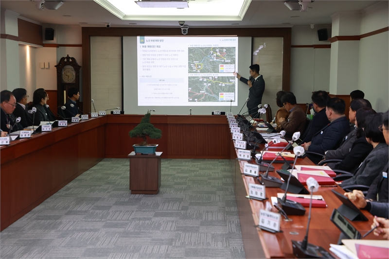 지난 12일 열린 버스공영제 노선체계 개편 용역보고회 모습