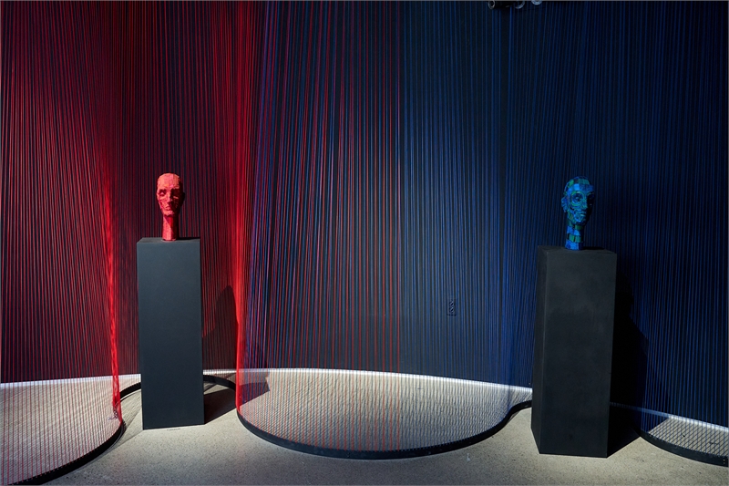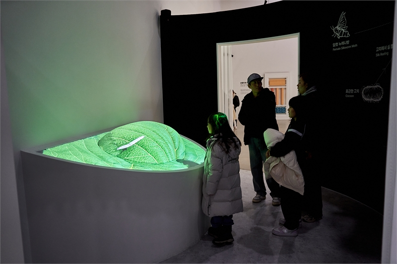 '오방-The Woven Cosmos-오방의 빛이 짠 우주’를 주제로 전통 실크 기반의 조각, 회화, 미디어아트, 패션 등 총 43점이 전시돼 있다.