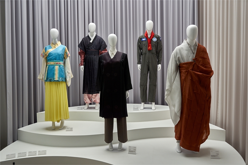실크로 만든 의류들. 승복과 법복, 파일럿복(빨간 마후라 등), 개량 한복이 전시돼 있다.