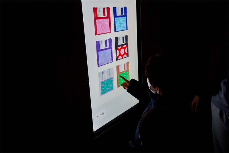 영상실에서 디자인이 저장돼 있는 디스켓을 누르면 실크의 패턴(디자인)을 볼 수 있다.