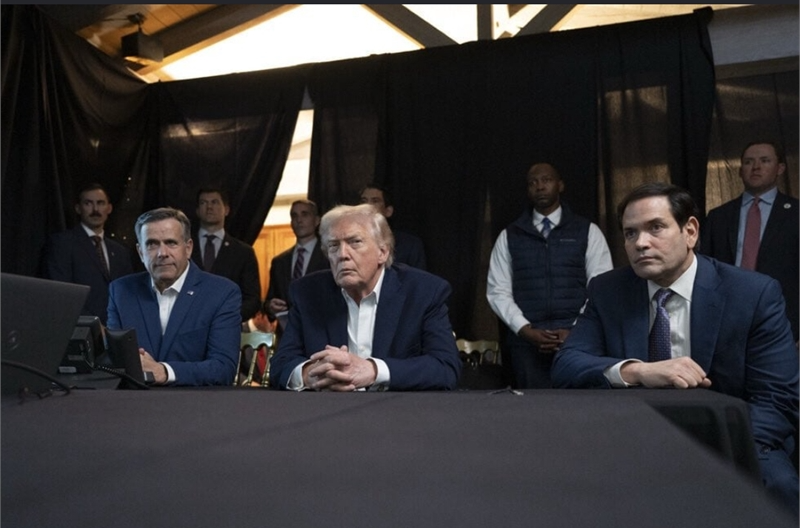 도널드 트럼프 미 대통령(가운데), 마코 루비오 국무장관이 3일 플로리다주 모처에서 니콜라스 마두로 베네수엘라 대통령 부부 압송 작전을 지켜보고 있다. 백악관