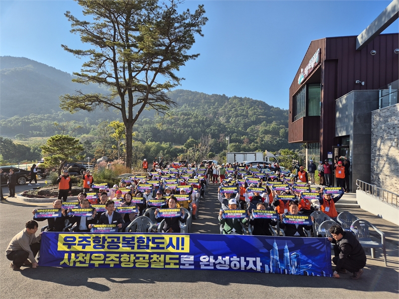 경남 사천시파크골프협회는 29일 사천 모충파크골프장에서 열린 제1회 사천시장배 파크골프대회에서 ‘사천우주항공 국가철도망 구축’ 캠페인을 전개하며 시민들의 참여 분위기를 확산시켰다.이날 캠페인은 사천시가 추진 중인 사천우주항공 국가철도망 구축사업의 필요성과 당위성을 시민들에게 널리 알리기 위해 사천시파크골프협회에서 마련했다