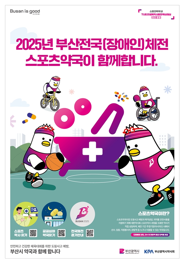 부산시는 제106회 전국체육대회(17~23일)와 제45회 전국장애인체육대회(10월 31일~11월 5일) 기간에 부산아시아드주경기장 1층에 스포츠약국을 운영한다고 밝혔다.스포츠약국은 체육대회 기간 선수단과 시민의 건강을 보호하고, 전문 복약상담 등으로 도핑사고를 예방하고자 부산시약사회와 함께 구축해 운영한다. 부산시약사회는
