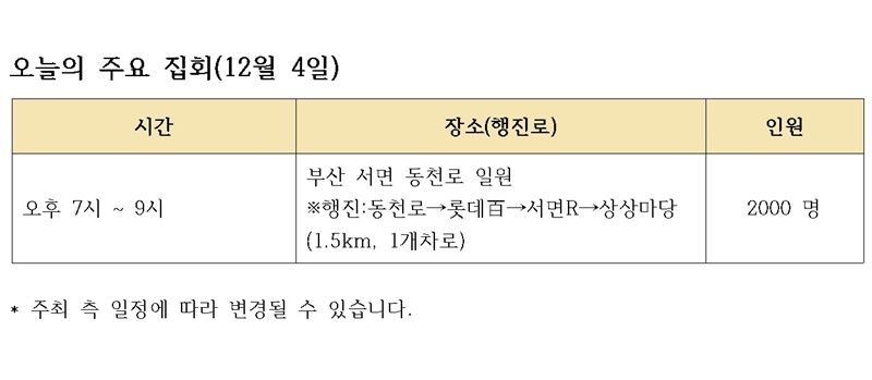 부산경찰청이 제공하는 [오늘의 집회]···4일 오후 부산 서면 동천로 일원