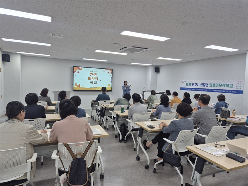 경남 진주시는 14일 상평복합문화센터 2층 프로그램 강의실에서 진주시 신중년(50~64세) 30명이 참석한 가운데 ‘2025년 진주시 신중년 인생이모작학교’ 입학식을 개최했다.이날 30명의 신중년 입학생들은 첫 만남의 어색함을 깨기 위해 게임을 통한 자기소개와 자신만의 인생 그래프를 그려보고 공유하는 시간을 가지며, 서로