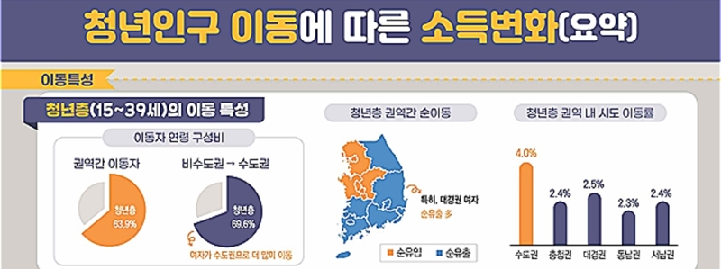 비수도권에 사는 청년이 수도권으로 이동하면 평균소득이 약 23% 더 늘어난다는 분석이 나왔다.반면 서울을 떠나 비수도권으로 간 청년의 소득 증가율은 한자릿수에 그쳤다. 국가데이터처는 3일 지방시대위원회와 함께 ‘청년 인구이동에 따른 소득변화 분석’을 발표했다.