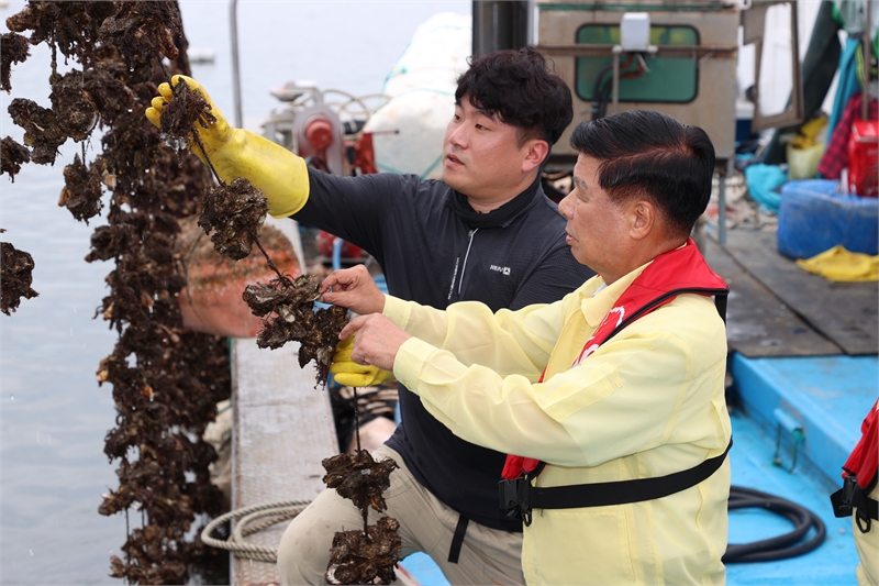 이상근 경남 고성군수, 산소 부족 물덩어리 발생, 굴·가리비 피해 양식장 방문