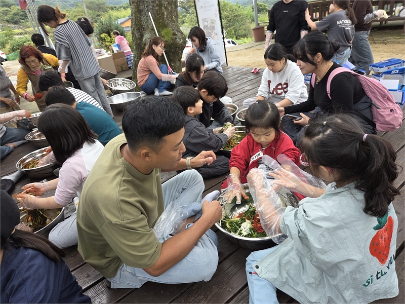 경남 산청군은 농촌크리에이투어로 지난 19일 차황면 철수체험휴양마을에서 ‘열무김치 한판 in 산청’을 운영했다고 20일 밝혔다.가족 단위로 35명이 참여한 이번 행사에서는 친환경 지역인 차황면에서 재배한 열무를 직접 수확한 뒤 열무김치를 담가 전통음식 문화와 농산물의 소중함을 배웠다. 특히 친환경 메뚜기쌀을 활용한 전통