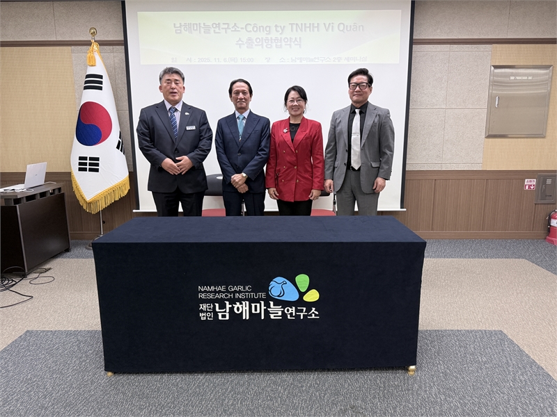 경남 남해마늘연구소는 지난 6일 베트남 비꽌 유한책임회사(Công ty TNHH Vi Quân)와 ‘보물섬 유자 C 콜라겐 젤리스틱’ 수출 의향 및 공동연구를 통한 제품 개발 업무협약을 했다고 밝혔다.베트남 현지 기업인 비꽌(Vi Quân)사는 2001년 설립됐으며 베트남 기반의 브랜드·유통·전시 및 프로모션 전문 기업이