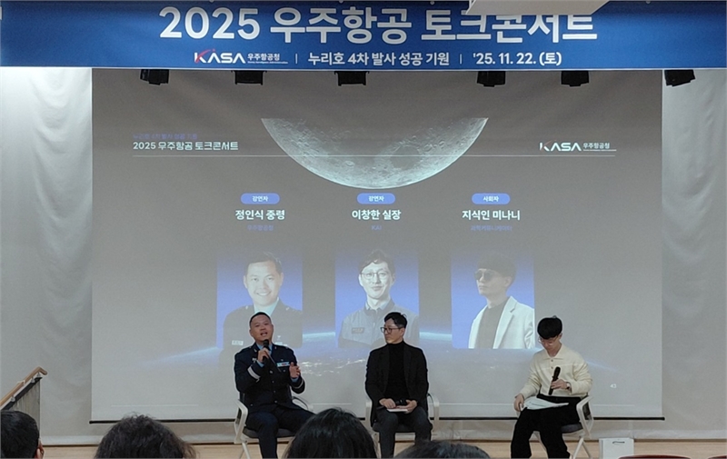 경남 사천시립도서관에서 지난 22일 개최된 ‘2025 사천스페이스 라운지’ 행사가 시민들의 큰 호응 속에 성공적으로 마무리됐다.이번 행사는 오는 27일 새벽 1시경 예정된 누리호 4차 발사 성공 기원을 위해 마련됐으며, 우주항공청이 주관했다. 이날 우주를 주제로 한 토크 콘서트에는 정인식 우주항공청 중령과 이창한 한국항공