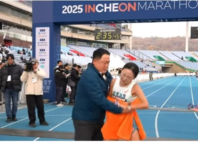 지난 23일 2025 인천국제마라톤대회 국내 여자부에서 우승한 이수민 선수(삼척시청)가 결승선 통과 직후 불거진 소속팀 김완기 감독의 부적절한 신체 접촉 논란과 관련해 감독으로부터 어떠한 사과도 받지 못했다고 밝혔다.앞서 김 감독은 한 언론 인터뷰에서 "마라톤 선수는 결승선에 들어오자마자 실신하는 경우가 많아 안 잡아주면