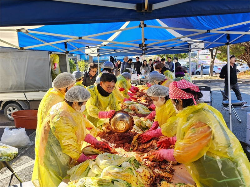 경남 진주시 금산면발전협의회는 지난 21일 어려운 이웃들에게 따뜻한 마음을 전하기 위한 ‘2025년 사랑의 김장나눔행사’를 열었다.이날 행사는 금산농협과 금산면 봉사단체의 후원금으로 마련됐다. 금산면 농가주부모임(회장 김점희) 등 봉사단체 회원 70여 명이 참여해 김장김치 400포기를 담갔다.