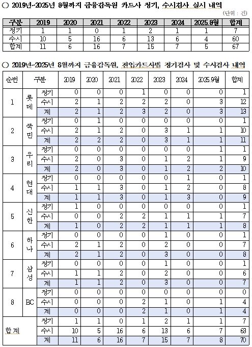 금감원, 7년여간 카드업권 보안 검사 67회나 했지만 '형식적 검사'