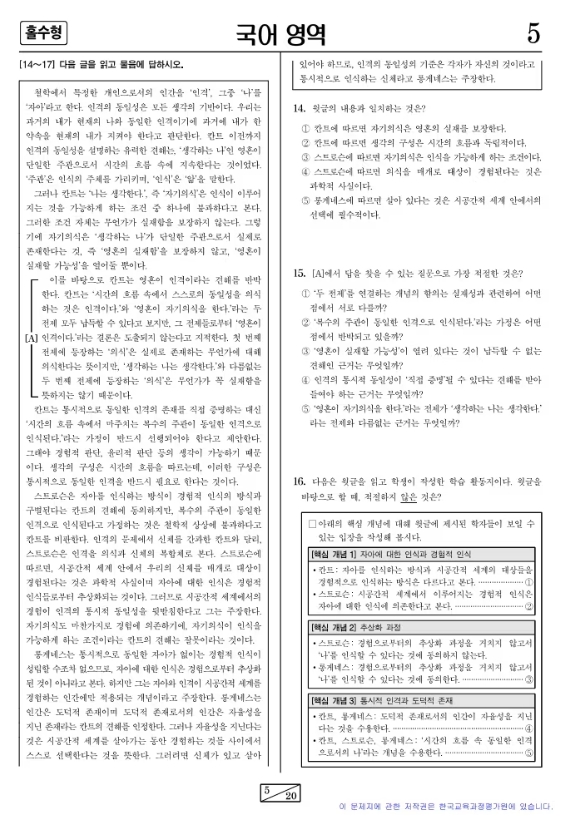 지난 13일 치러진 2026학년도 수능 국어 영역에 오류 문항(問項·문제 항목)이 있다는 주장이 나왔다.19일 교육계에 따르면 이충형 포항공대(포스텍) 인문사회학부 철학과 교수는 한 수험생 커뮤니티 게시판에 ‘국어 17번 문제 제기’라는 제목의 글을 올려 “수능 국어 시험에 칸트 관련 문제가 나왔다고 하기에 풀어 보았는데