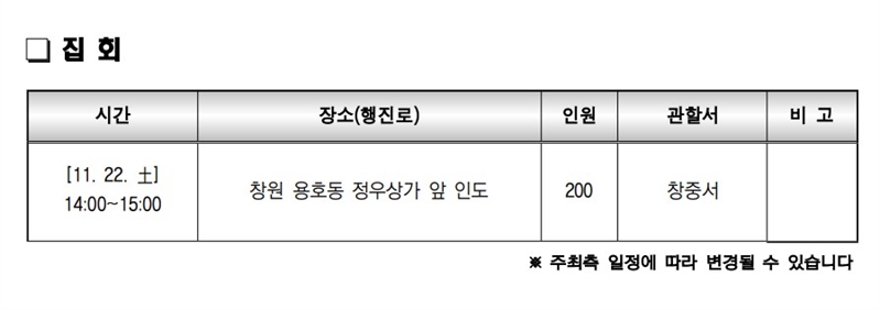 경남경찰청이 제공하는 [오늘의 집회]···22일 창원 용호동 정우상가 앞 인도