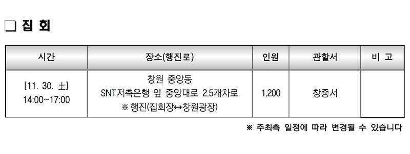 경남경찰청이 제공하는 [오늘의 집회]···29일 창원 중앙동 SNT저축은행 앞