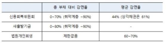 이들이 보유한 신용·보증채무 중 재산가액을 초과하는 순부채에 한해 60∼80%의 원금을 조정해준다. 자산이 많을수록 감면 폭이 줄어든다.