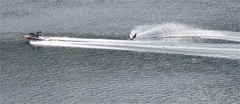 강을 시원하게 가르는 수상스키 모습. 합천군 제공