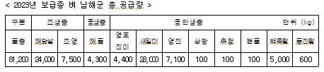 공급 가격은 공공비축미 수매가가 확정된 이후인 내년 1~2월 상순에 고지할 예정이며, 공급은 종자대금 입금이 완료되면 3월 내 농협을 통해 공급된다.