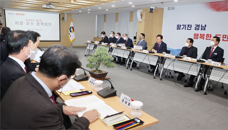 박완수 경남도지사는 2일 도청 도정회의실에서 도내 시장·군수와 도 실국본부장이 참석한 가운데 ‘민선8기 제2회 시장·군수 정책회의’를 주재했다.