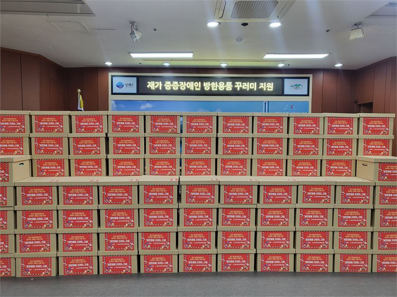 경남 남해군은 집에서 생활하는 중증장애인 150가구에 방한용품 꾸러미를 전달했다.