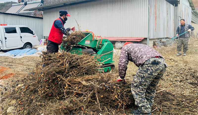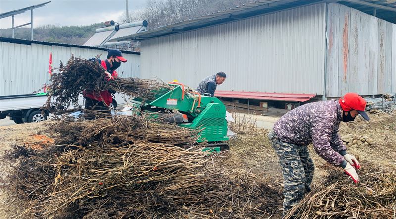 경남 합천군 쌍책면은 지난 16일 쌍책면 관내에서 잔가지 파쇄기를 이용해 영농부산물 파쇄 작업을 했다.