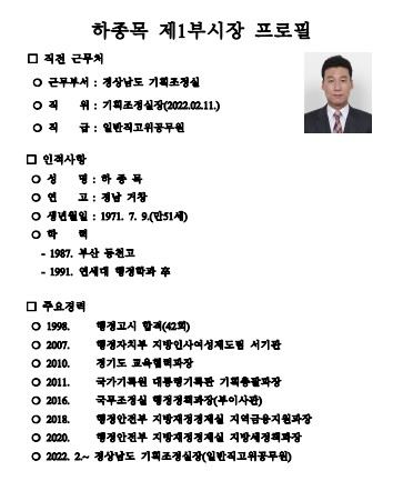 □ 하종목 창원시 신임 제1부시장 경력