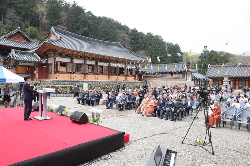 경남 고성군은 25일 천년고찰인 옥천사 자방루의 국가지정문화재(보물) 지정을 기념하는 행사를 개최했다.