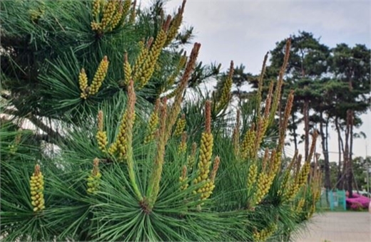 봄을 맞아 왕성하게 자란 소나무의 순. 정기홍 기자