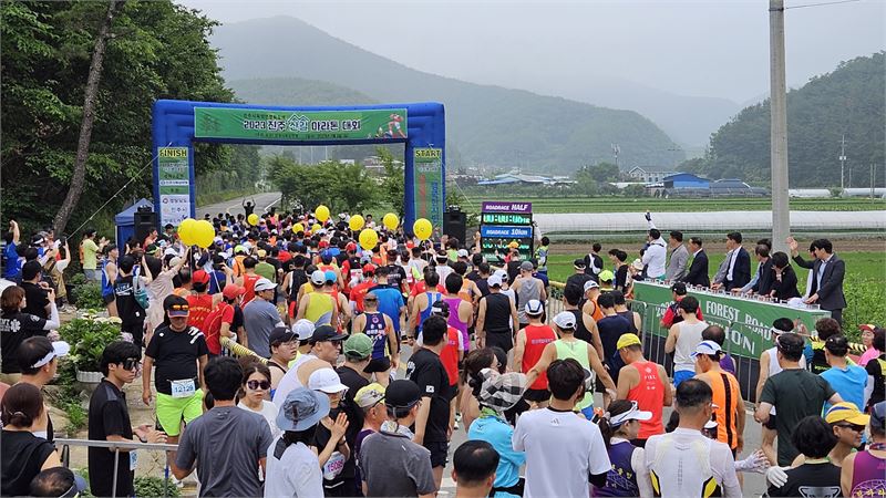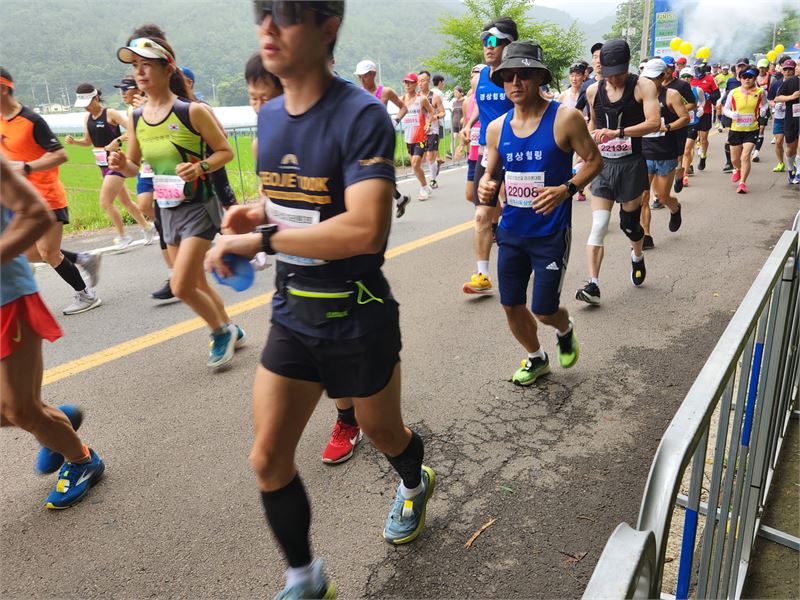 참가자들은 오전 9시 광제산 홍지 주차장에서 출발해 광제산과 집현산이 이어지는 해발 300~400m 높이의 숲속 산복도로를 지나 저수지와 둑길로 연결된 코스를 달렸다.