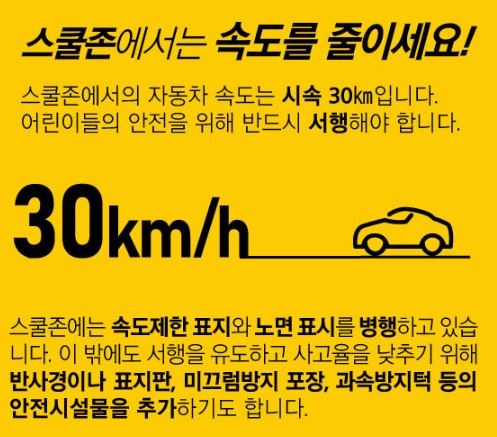 어린이보호구역(스쿨존)의 획일적 속도 제한이 비효율적이라는 지적에 따라 등·하교 시간대와 밤 시간대 속도제한이 달리 적용된다.