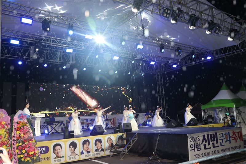 의령의 전통 문화자원인 한지와 가야금을 주제로 펼쳐진 ‘2023 의령신번문화축제’의 개막식에는 궂은 날씨에도 불구하고 군민, 향우, 관광객 등 1500여 명이 운집해 축제의 성대한 시작을 알렸다.