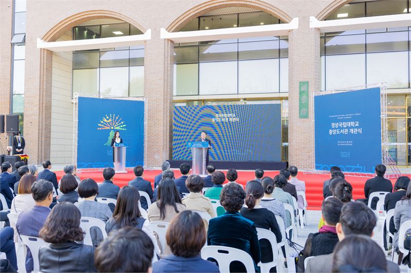 권순기 총장은 “전국 우수 학생 유치, 학생 이탈 방지, 취업률 제고 등에 선제적으로 대응하기 위해 중앙도서관 리모델링을 추진했다. 그 결과 수요자 중심의 복합문화공간이 탄생했다”며 “교수와 학생들이 중앙도서관에서 연구와 면학에 전념해 국내 최고의 연구자와 인재가 되기를 바란다. 이를 기반으로 경상국립대가 세계 최고 명문 대학으로 발전하기를 바란다. 그 중심에 도서관이 ‘경이롭게 뻗어가는 개척나무’가 될 것임을 확신한다”고 강조했다.