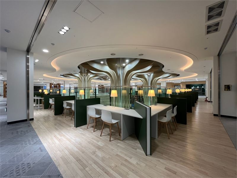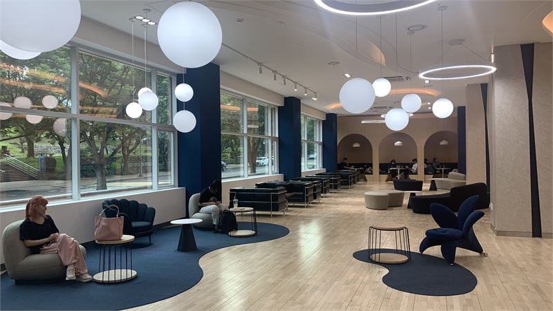 또 1인 캐럴, 계단형 자율 공간인 북스퀘어, 카페 및 전시 라운지, 스마트 그룹스터디 룸 및 엔터테인먼트 룸 등의 공간에 다양하고 개성 있는 디자인가구와 인테리어를 도입했다.
