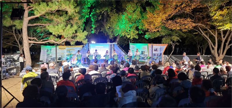 지난 27일 경남 진주시 상평동 송림공원에서는 알뜰하고 살뜰한 작은 음악회가 열렸다. 주민자치위원회가 큰 맘을 먹고 처음으로 준비한 ‘솔밭 작은음악회’다