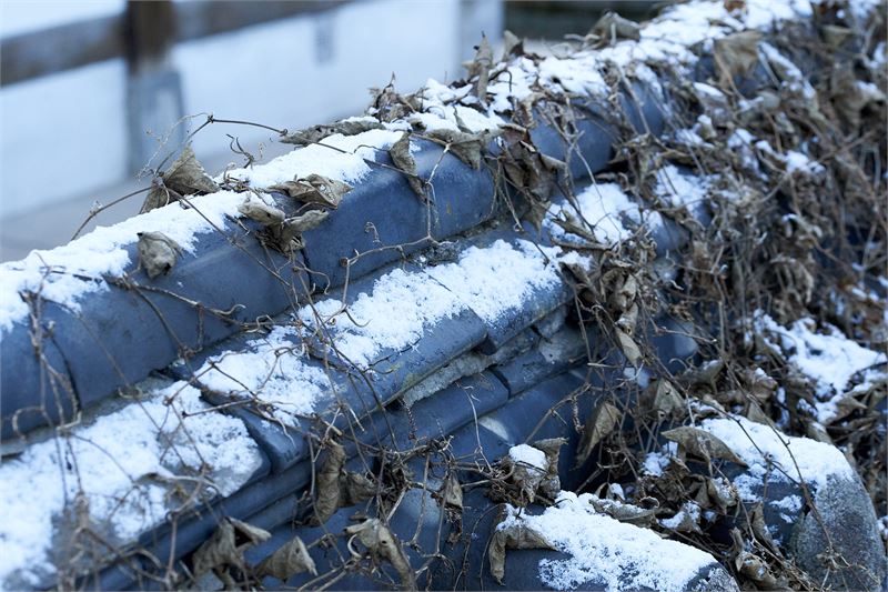 운치 있게 담장 위에 쌓인 눈. 말라 퇴락한 담쟁이 넝쿨 사이로 내린 눈이 하얗게 제 자리를 잡았다.