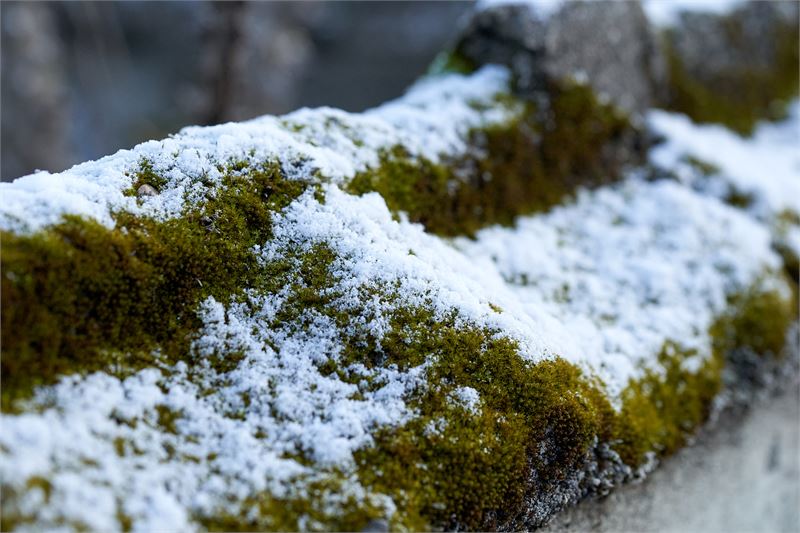 누른 담장 이끼와 밤새 담장을 침범한 흰 눈. 조합이 전혀 안 될 것 같은 둘이 만나 기막힌 그림 한 점을 만들어냈다.