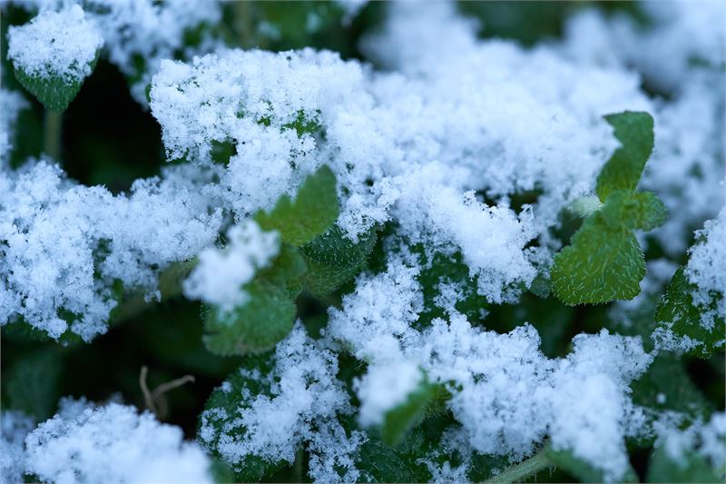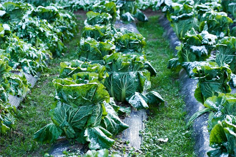 초록색이 완연한 채소에도 눈이 하얗게 내려앉았다.