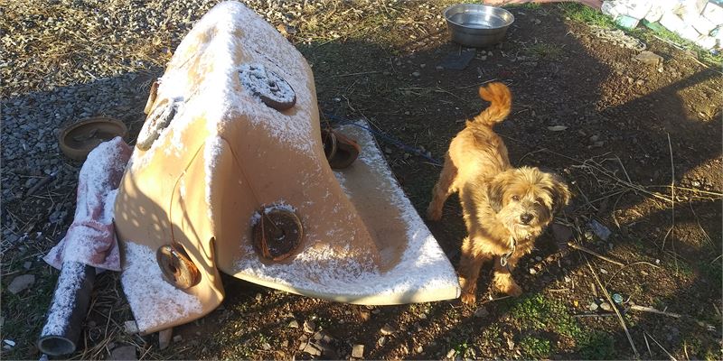마당에 마련된 집에서 밤새 자던 발발이도 아침 일찍 나와 많진 않지만 첫눈을 반기고 있다. 발발이 집 위에 눈이 하얗게 내려앉았다.
