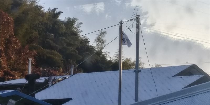 눈 내린 지붕이 새하얗다. 태극기가 세게 휘날만큼 아침 바람도 세차 체험온도는 훨씬 낮았다.