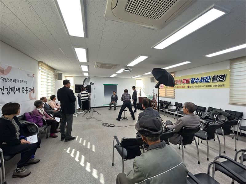 대한노인회 사천시지회 곤명면분회는 전문 사진작가인 노명섭 경상국립대 사진아카데미 강사의 도움으로 65세 이상 어르신 100여 명의 장수사진을 촬영했다.