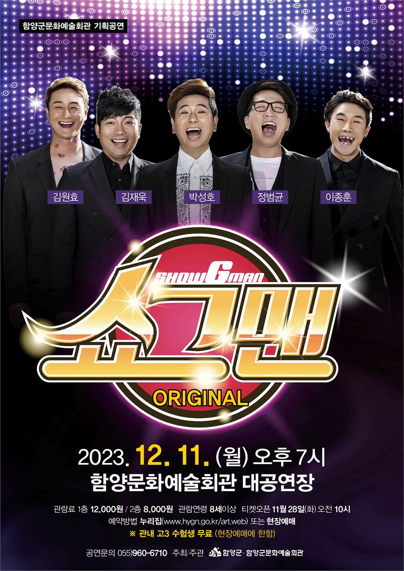 경남 함양군문화시설사업소(소장 이양숙)는 오는 11일 오후 7시, 함양문화예술회관 대공연장에서 ‘쇼그맨’ 공연을 한다고 밝혔다.