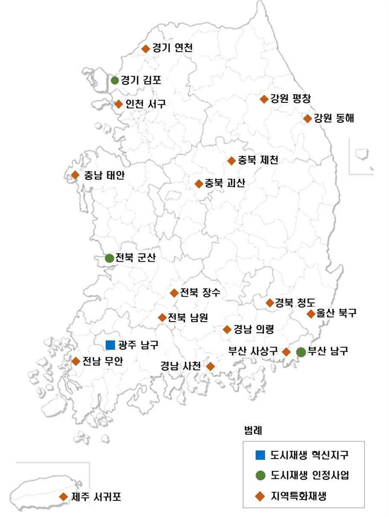 소규모 재생사업을 목적으로 하는 점 단위 '인정 사업'은 부산 남구, 경기 김포, 전북 군산 3곳에서 진행한다.