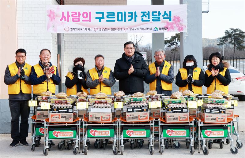 경남 함양군자원봉사센터는 지난 22일 ‘사랑의 구르미카(실버카)’ 전달식을 갖고 거동불편 어르신 가구에 생필품(두유, 달걀 등)과 함께 사랑의 구르미카 11대를 전달했다.