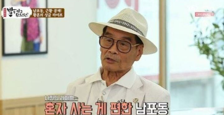 원로배우 남포동 씨가 지난 2020년 8월 3일 SBS플러스 '김수미의 밥은 먹고 다니냐?'에 출연해 근황을 이야기 하고 있다.