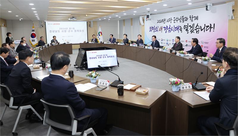 박완수 경남도지사는 1일 경남도청에서 도내 시장·군수 및 도 실국본부장과 함께 올해 '제1회 시장·군수 정책회의'를 주재했다.