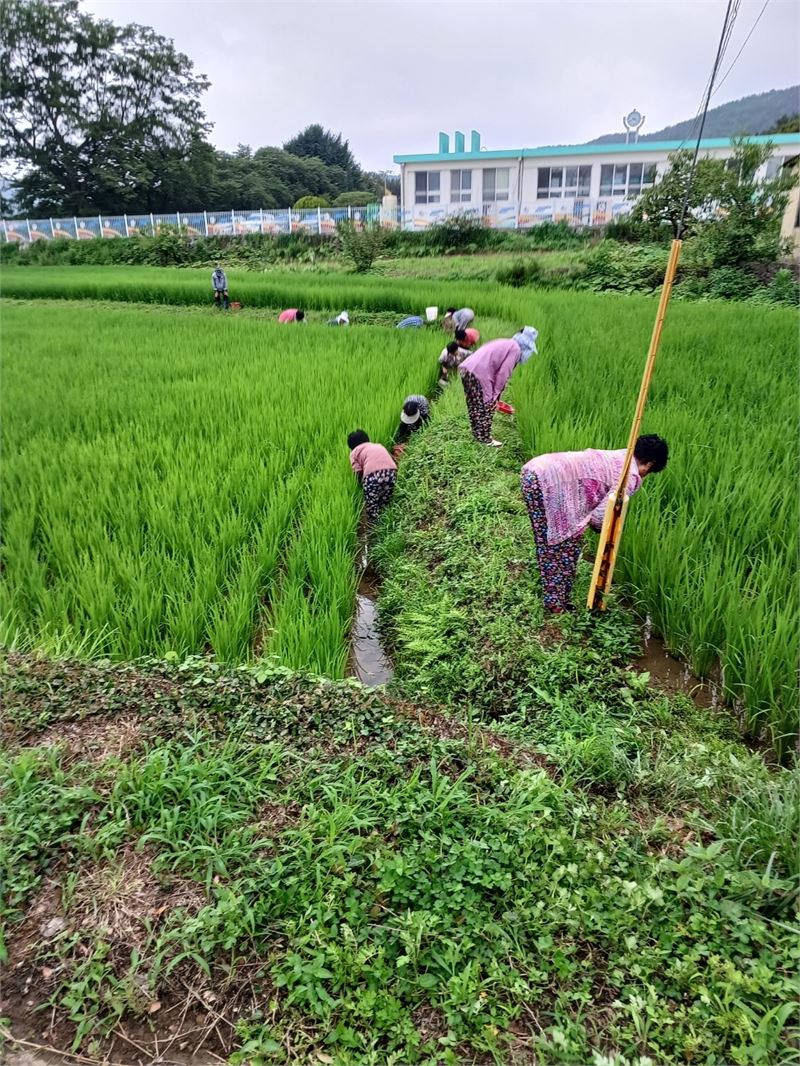 농업환경보전프로그램의 하나로 친환경농업 왕우렁이를 농민들이 회수하고 있다.
