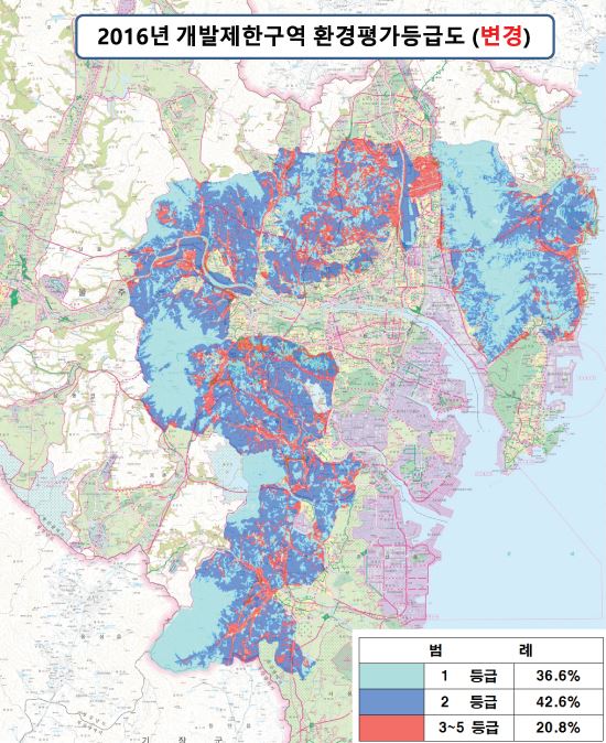 현재는 6개 환경평가 지표 중 1개만 1∼2등급이어도 그린벨트 해제가 불가능하지만 지역별 특성에 맞게 환경등급을 조정할 계획이다.