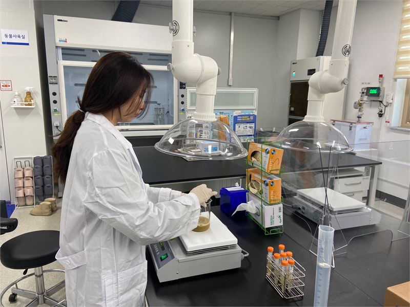 경남도수산안전기술원에서 패류독소 분석실험을 하고 있다.
