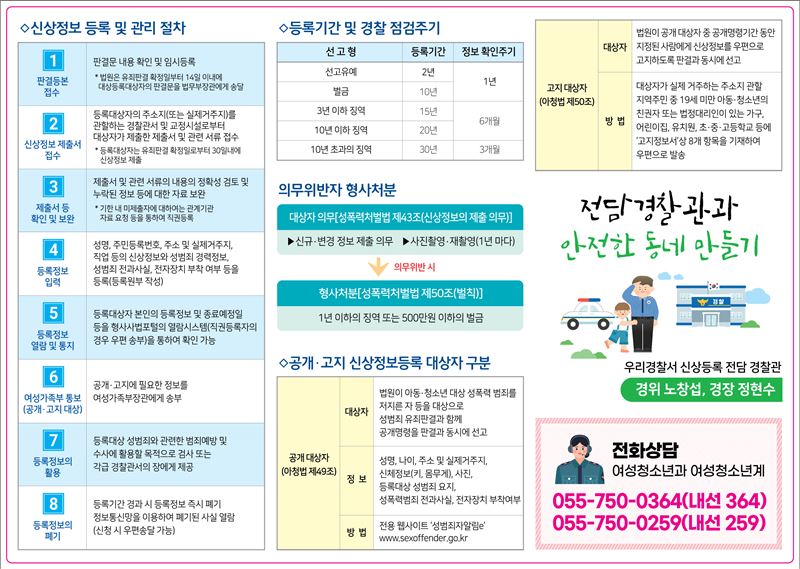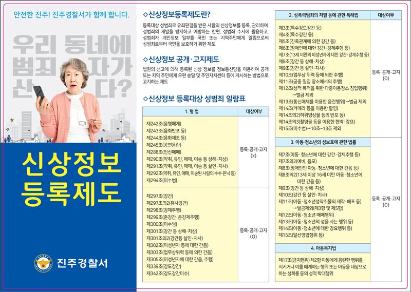 경남 진주경찰서 여성청소년과는 신상정보 등록제도를 알리고 홍보하기 위해 신상정보 등록제도 팸플릿을 제작해 배부한다고 24일 밝혔다.